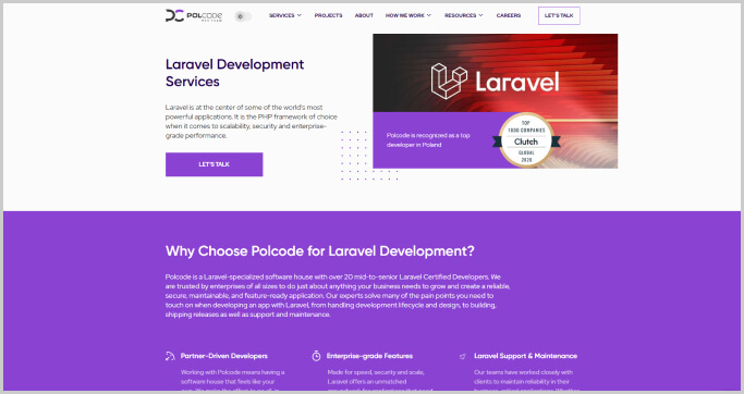 Aspects Details Top Clients Engagement Labs, AppyBee, NovelPay Minimum Project Size $10,000+ Hourly Rates $50 – $99 / hr Founded Year 2006 Location Warszawa, Poland Contact Information +48 228255047 or sales@polcode.com Polcode is a reliable software development company specializing in providing top-tier Laravel development services. The development team at Polcode consists of over 20 mid-to-senior Laravel-certified developers who are experts at developing high-performing business-critical web solutions.