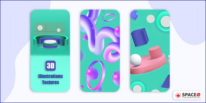 From SMBs, corporations, creativity art startups, hi-tech artificial intelligence, and experimental illustrations to animation for children, 3D textures are now everywhere. Fun and bold user interfaces with illustrations influence the app design to affect prominently.